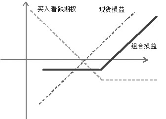 策略1优点:在锁定风险的同时还保留了盈利的空间。当未来标的价格下跌时,执行看跌期权,锁定风险。当标的价格上涨时,放弃看跌期权的执行,保留现货头寸的盈利,组合整体随标的价格的上涨而上涨。可以看到,该策略的组合损益与买入看涨期权类似,即下跌风险有限,上涨空间无限的特点,且买方拥有行使期权的权利。当行情往不利方向运行时,我们可以选择放弃行权,从而控制整体的风险。
