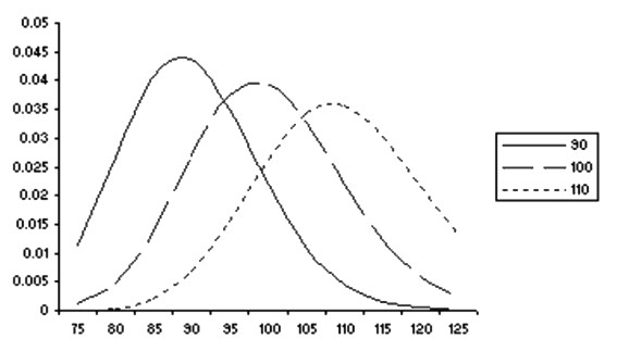 答:Gamma反映Delta值对于标的期货价格变动的敏感性。例如,某一期权的Delta值为0.6,Gamma值为0.05,就表示标的期货价格上升1元,Delta增加0.05。下图为三种不同行权价格下,期权Gamma值与标的资产价格的曲线变化。