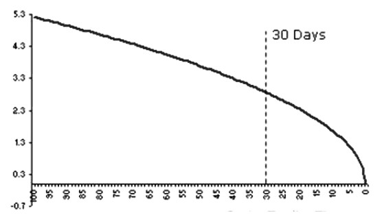 在其他因素不变的情况下,随着时间的流逝,期权价值不断下降,越临近到期日,下降速度越快。