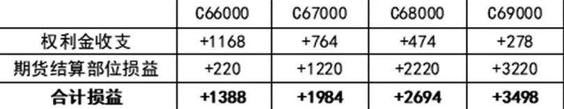 结算时沪铜期货市价在68000元/吨以下时,买进沪铜期货的成本维持在67500元/吨。结算时沪铜期货市价在68000元/吨以上时,买进沪铜期货的成本比市价少500元/吨。结算时沪铜期货市价在67500元/吨以上(行权价-权利金)时,价格锁定建仓策略较优。
