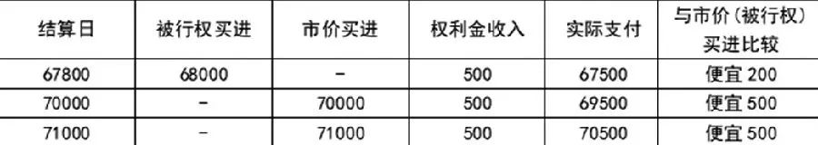 因此投资人乙被行权,付出68000元/吨买进沪铜期货,减去收到的500元/吨,建仓成本为68000-500=67500元。假如在期货市场直接建仓,则成本为67800元/吨。