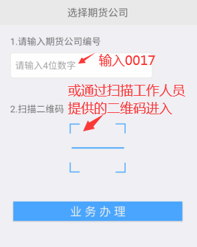 2亦可下载“期货开户云”,输入”0017“或扫工作人员所提供二维码进行后续操作