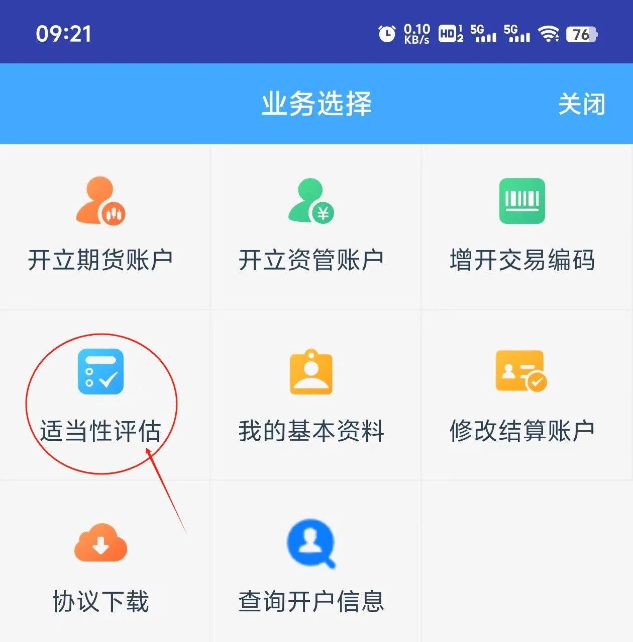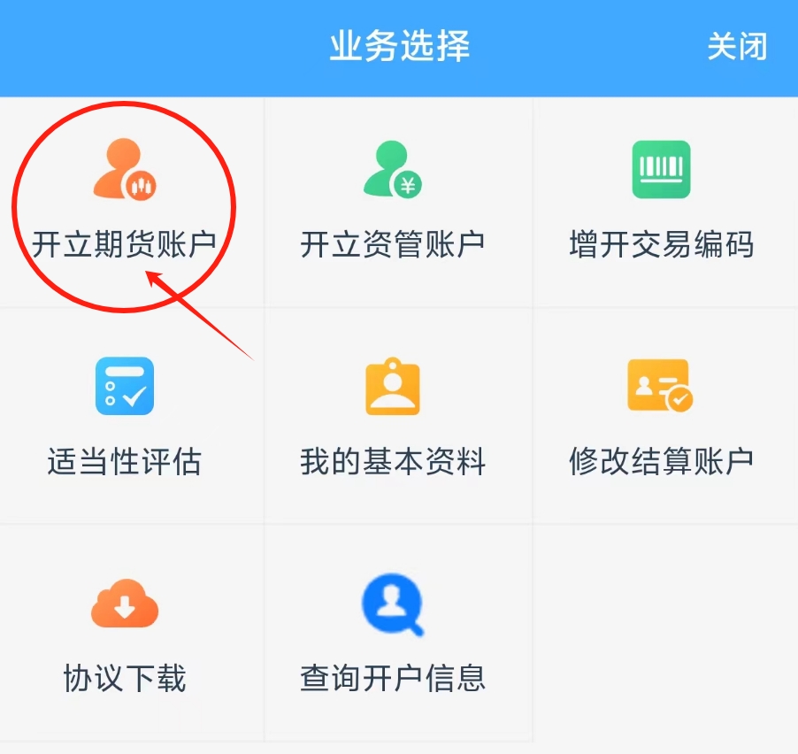 3选择“开立期货账户”业务