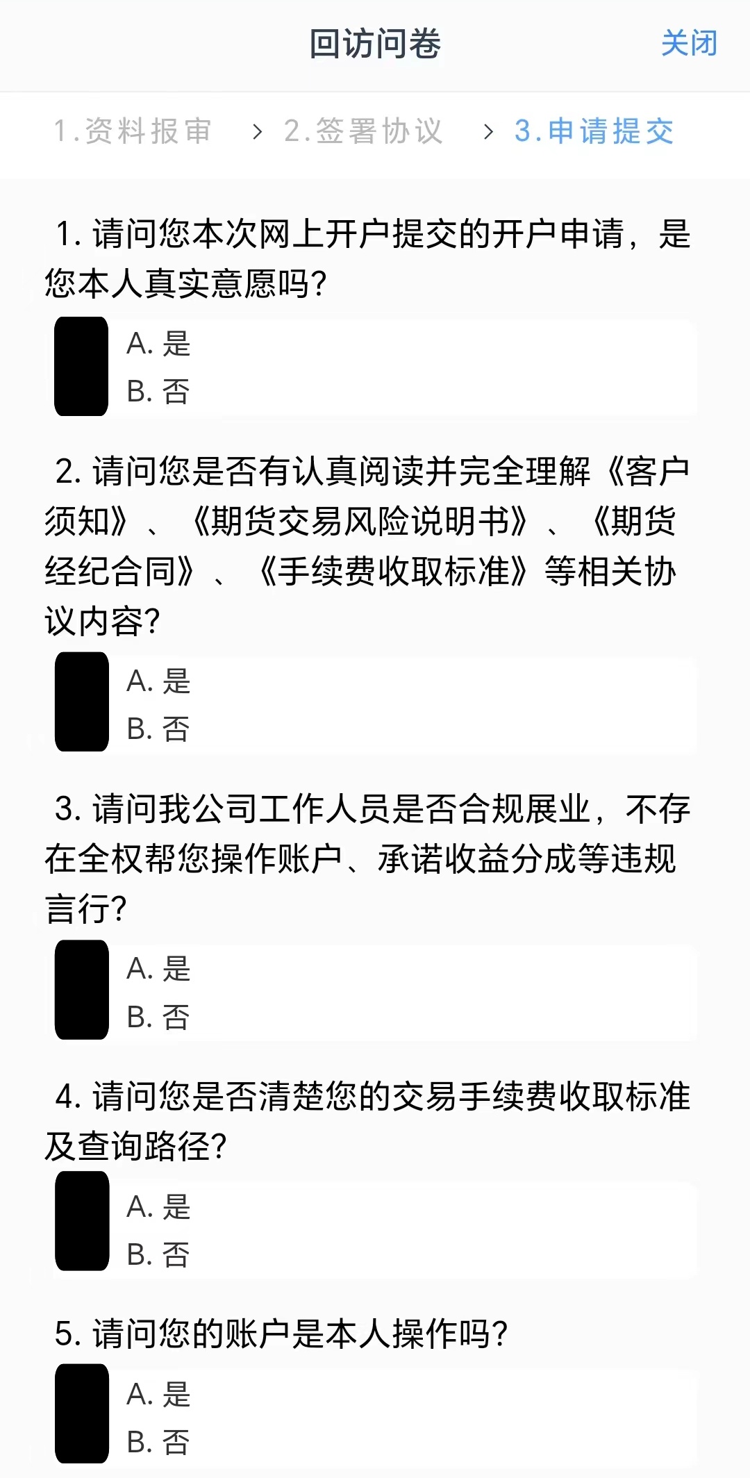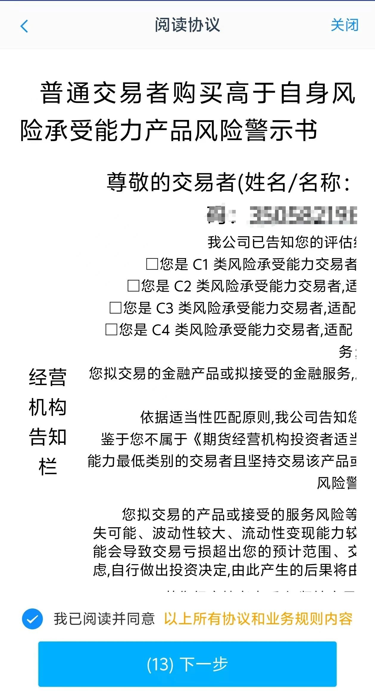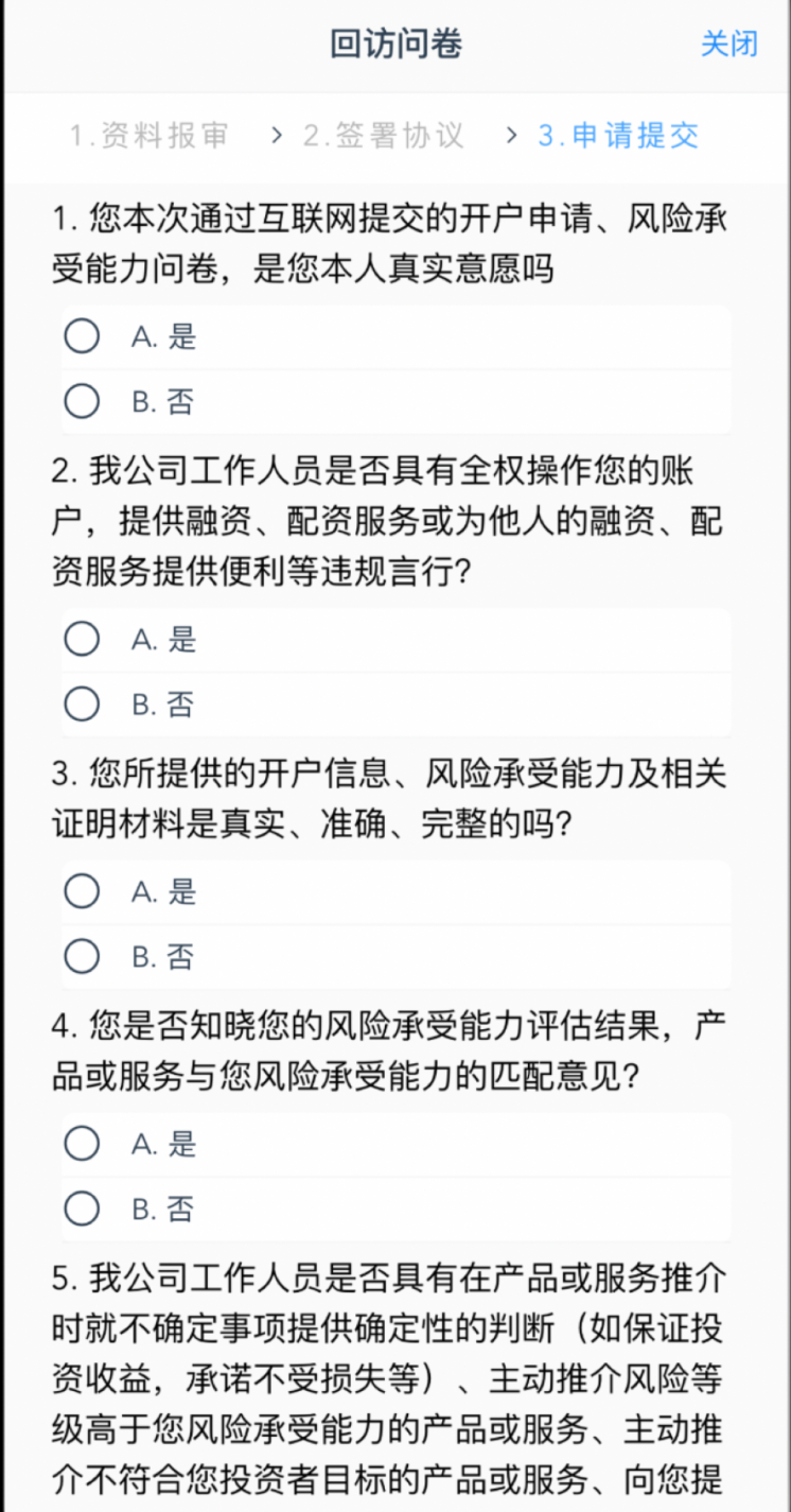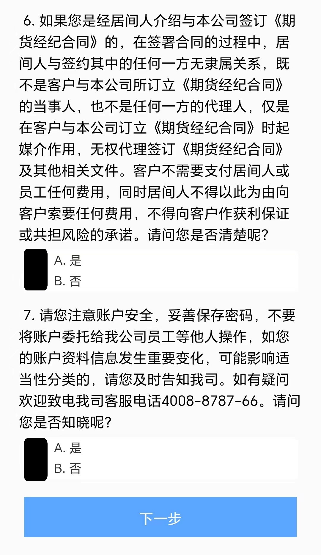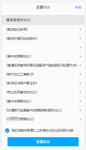 答:开户时客户需要仔细阅读并完全理解所有协议,因此客户需要将每项协议都点开阅读后才能进行下一步。