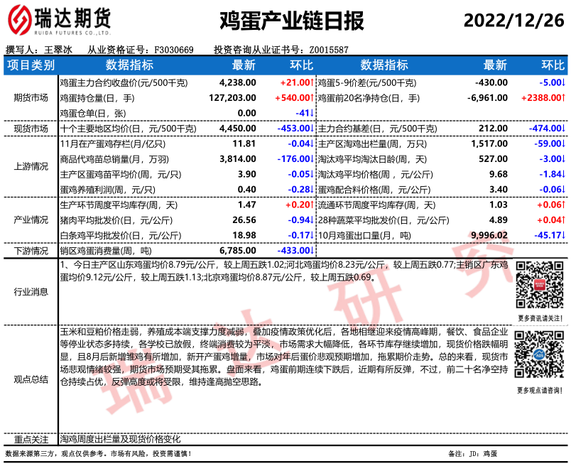 2025-12-23瑞达期货鸡蛋产业日报20251223