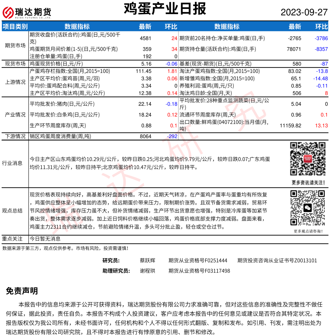 2025-12-22瑞达期货鸡蛋产业日报20251222