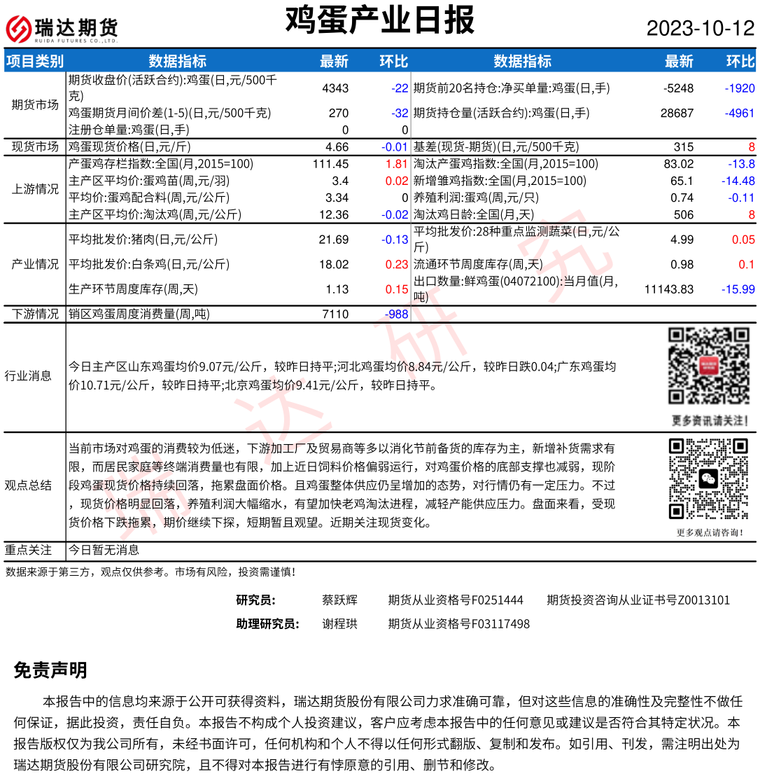 2025-12-23瑞达期货鸡蛋产业日报20251223