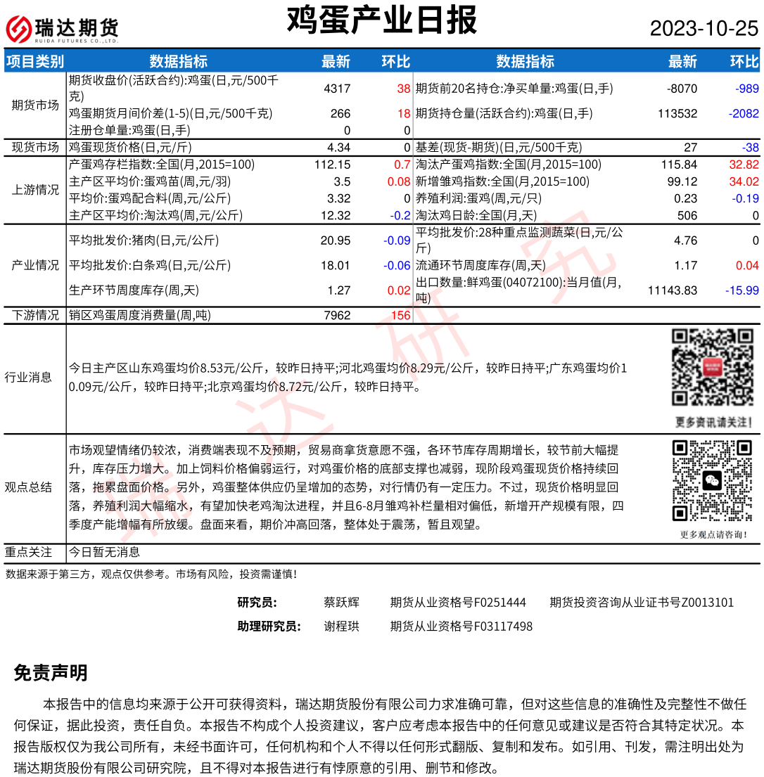 2025-12-23瑞达期货鸡蛋产业日报20251223