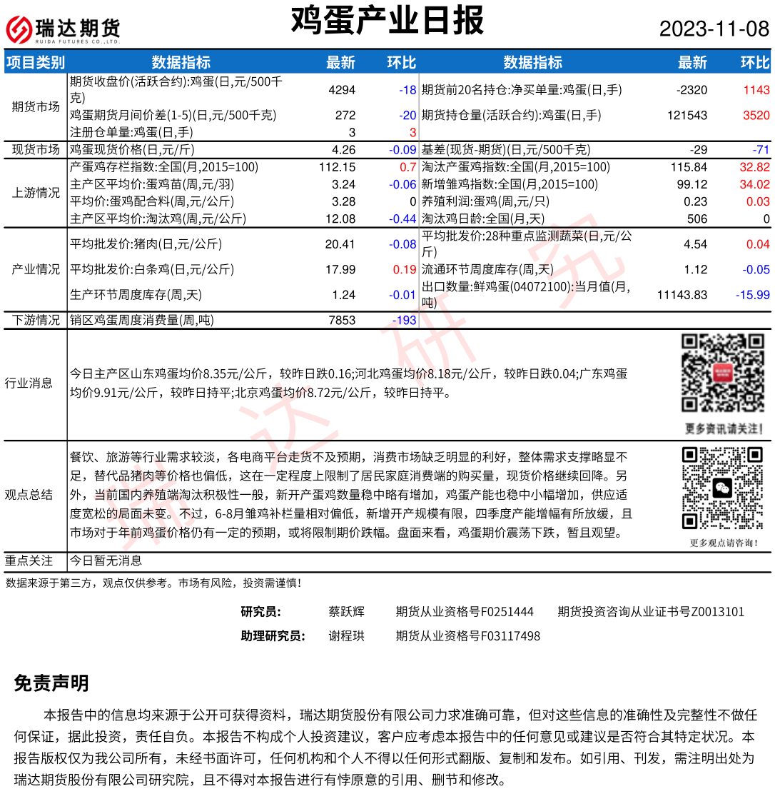 2025-12-23瑞达期货鸡蛋产业日报20251223