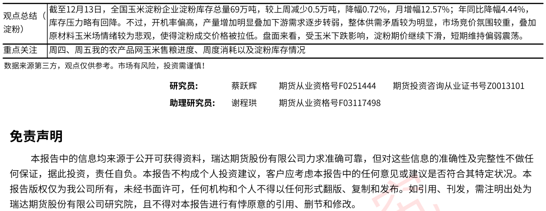 2025-12-25瑞达期货玉米系产业日报20251225