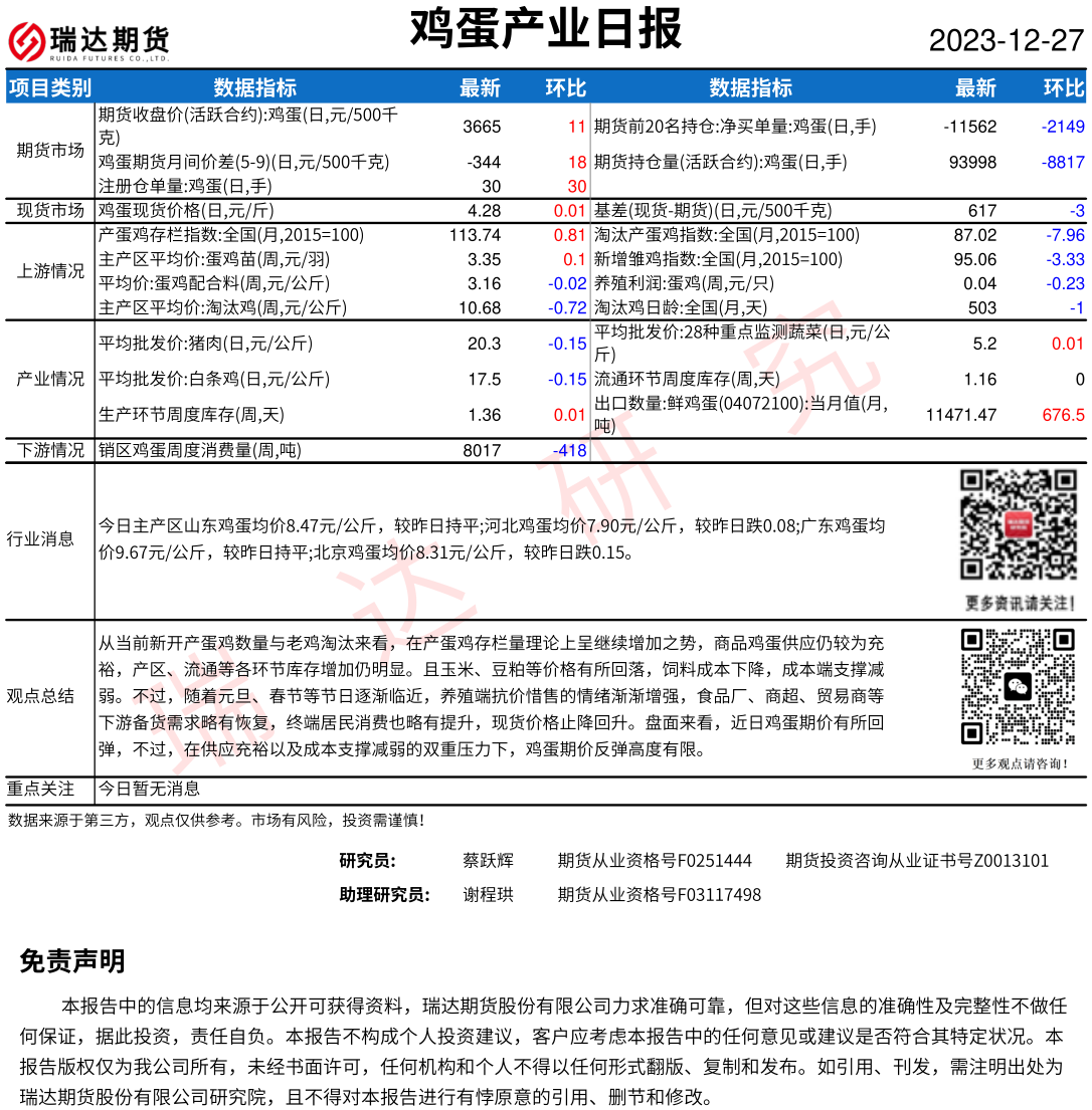2025-12-25瑞达期货鸡蛋产业日报20251225