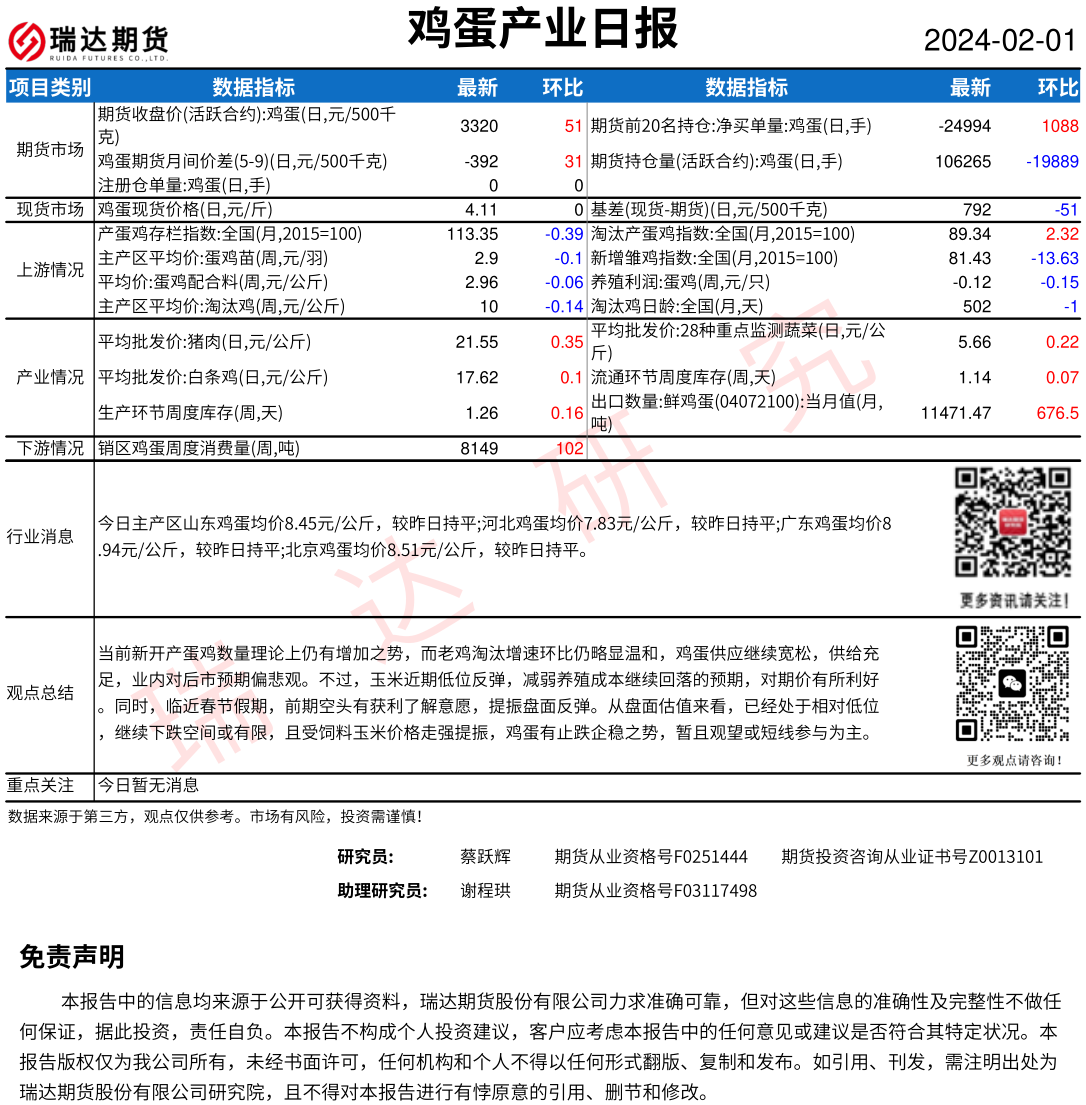 2025-12-25瑞达期货鸡蛋产业日报20251225