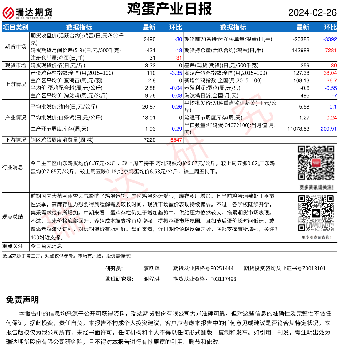 2025-12-25瑞达期货鸡蛋产业日报20251225
