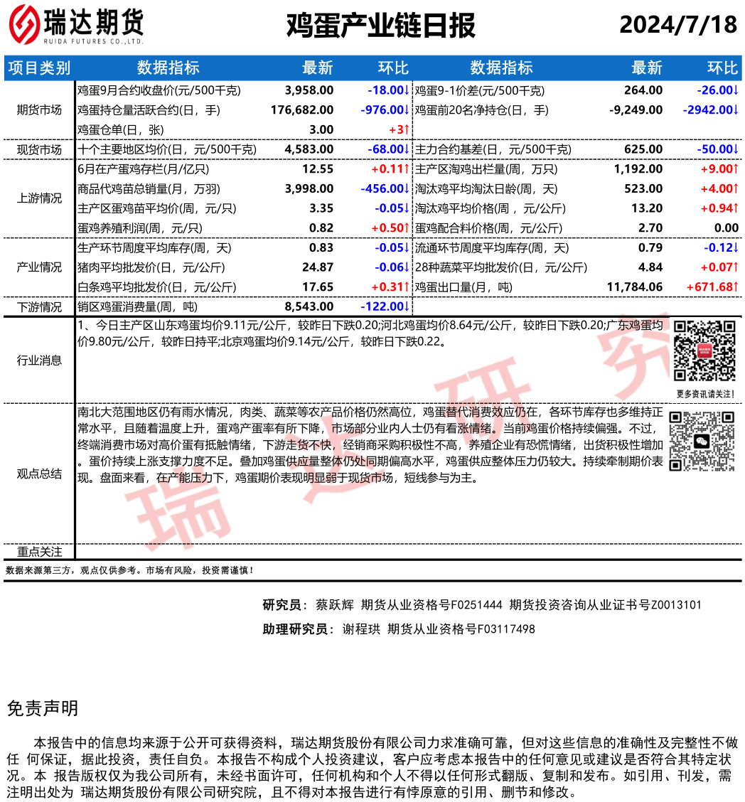 2025-12-30瑞达期货鸡蛋产业日报20251230