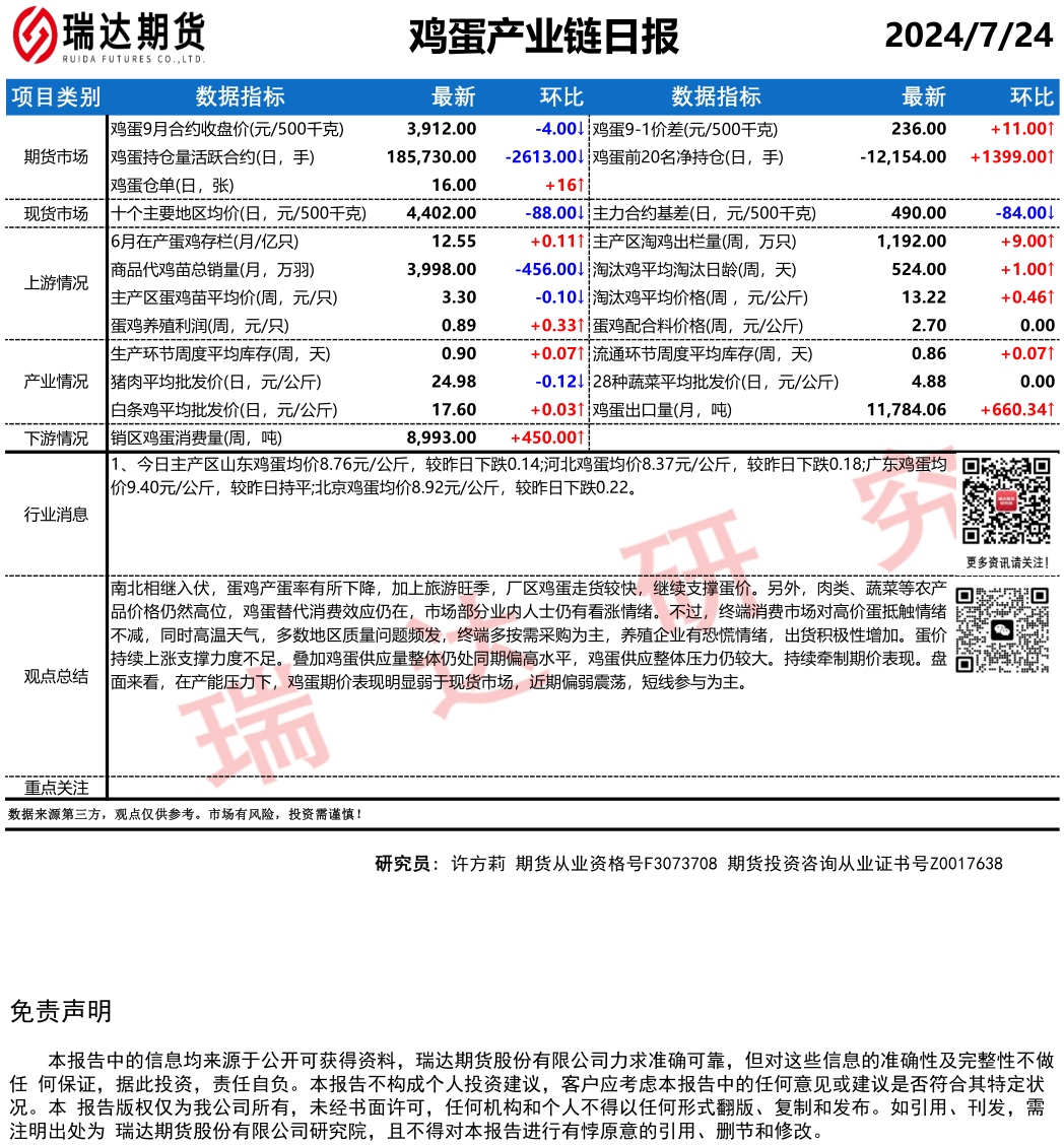 2025-12-30瑞达期货鸡蛋产业日报20251230