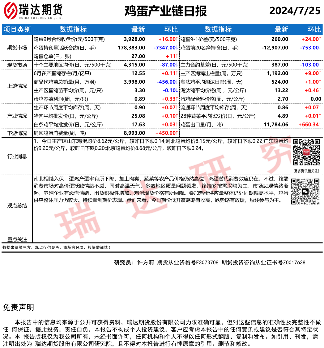2025-12-30瑞达期货鸡蛋产业日报20251230