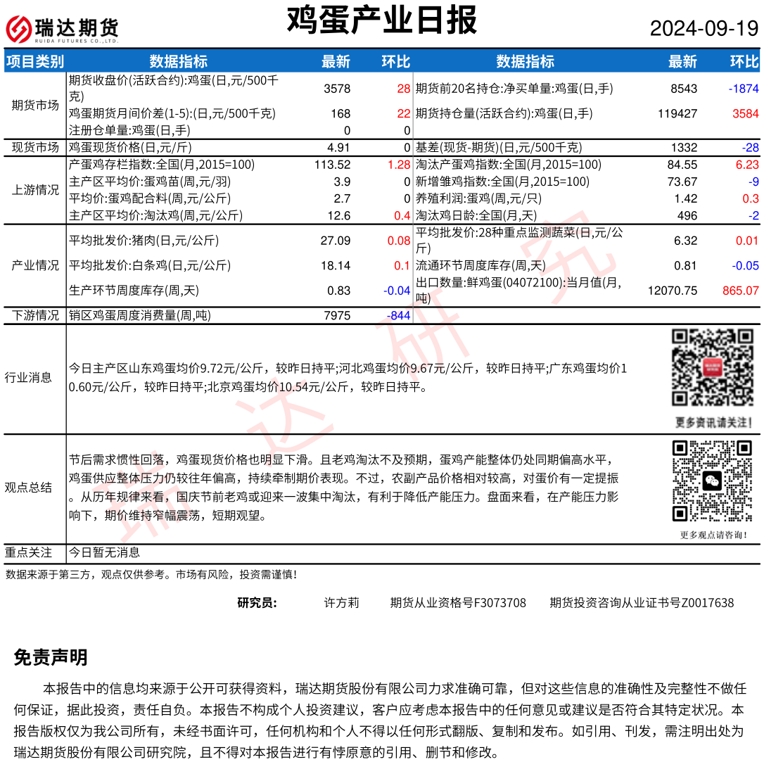 2025-12-30瑞达期货鸡蛋产业日报20251230