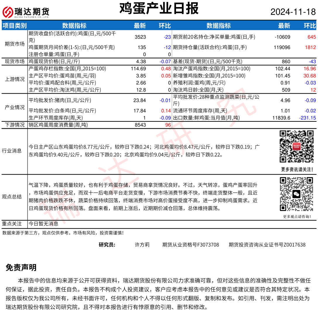 2025-12-30瑞达期货鸡蛋产业日报20251230