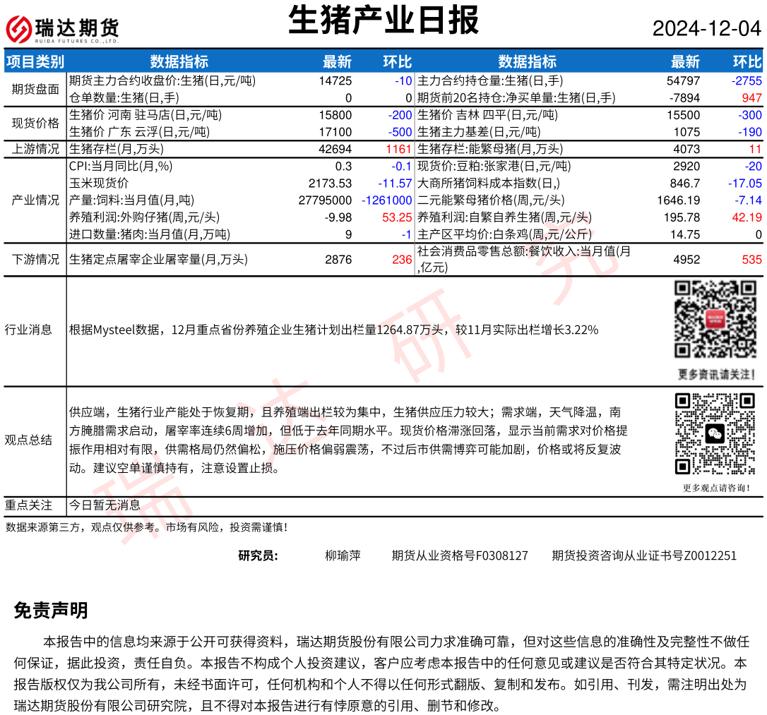 2025-12-30瑞达期货鸡蛋产业日报20251230