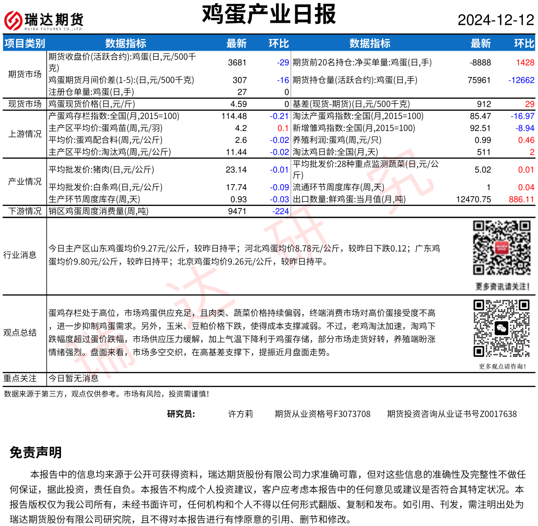 2025-12-17瑞达期货鸡蛋产业日报20251217