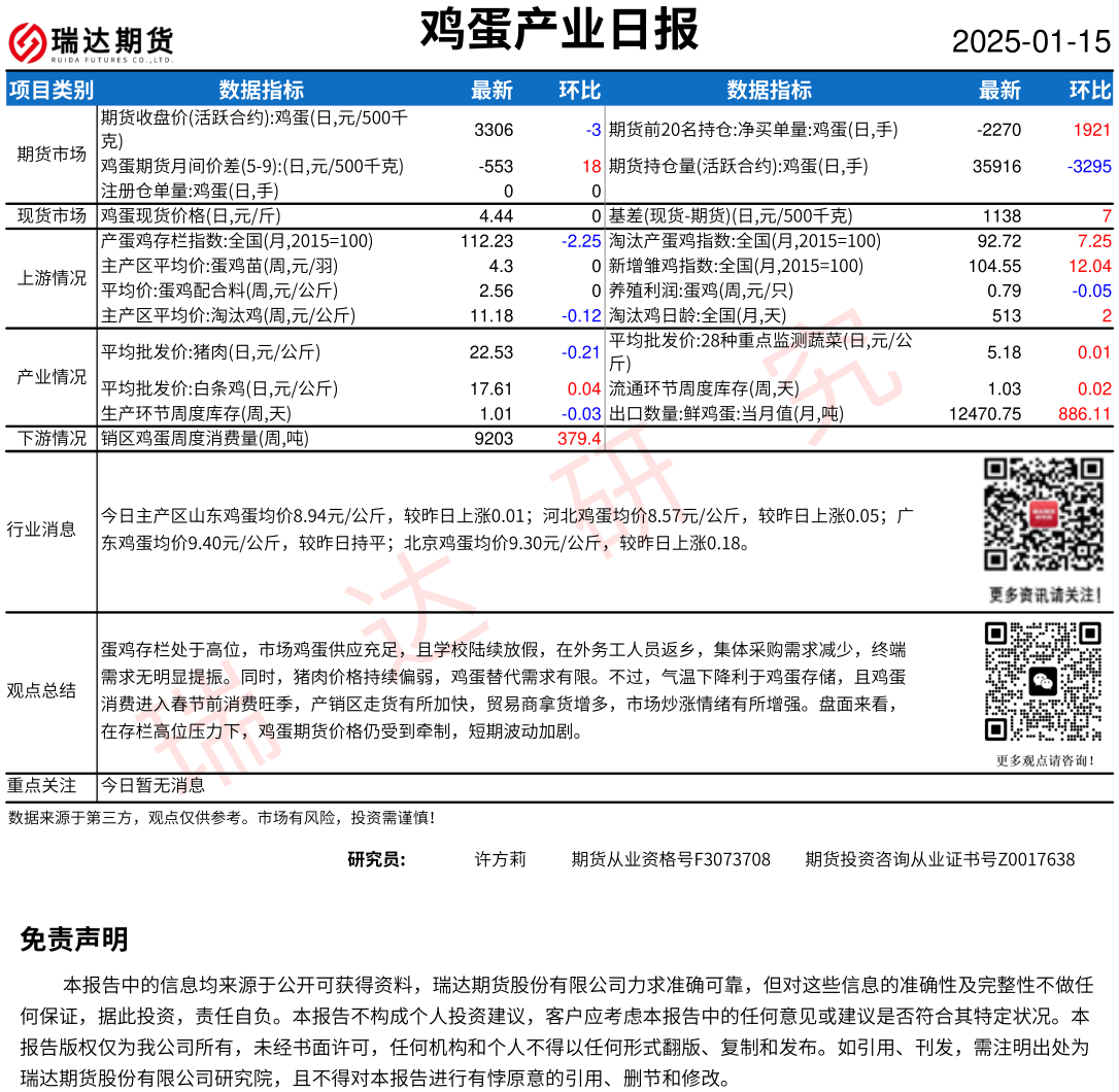 2025-12-17瑞达期货鸡蛋产业日报20251217