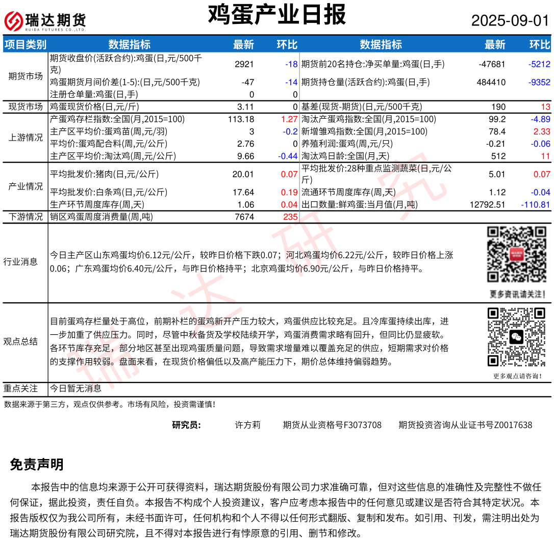 2025-12-04瑞达期货鸡蛋产业日报20251204