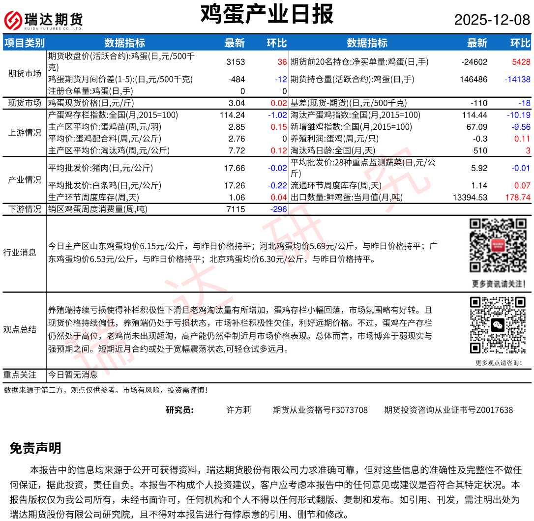 2025-12-08瑞达期货鸡蛋产业日报20251208