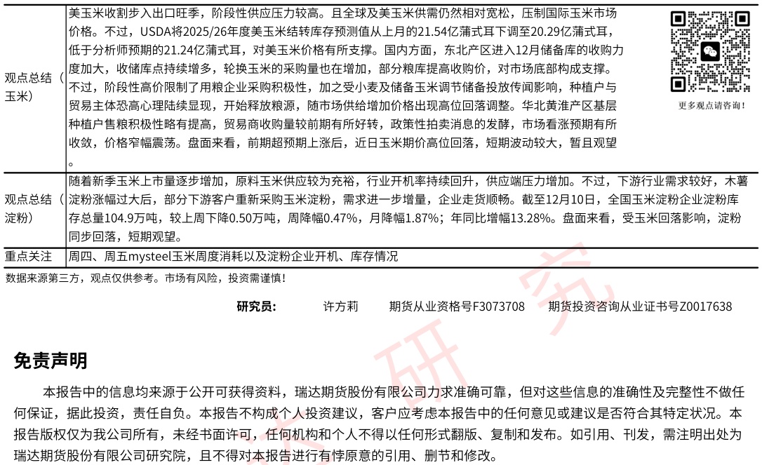 2025-12-15瑞达期货玉米系产业日报20251215