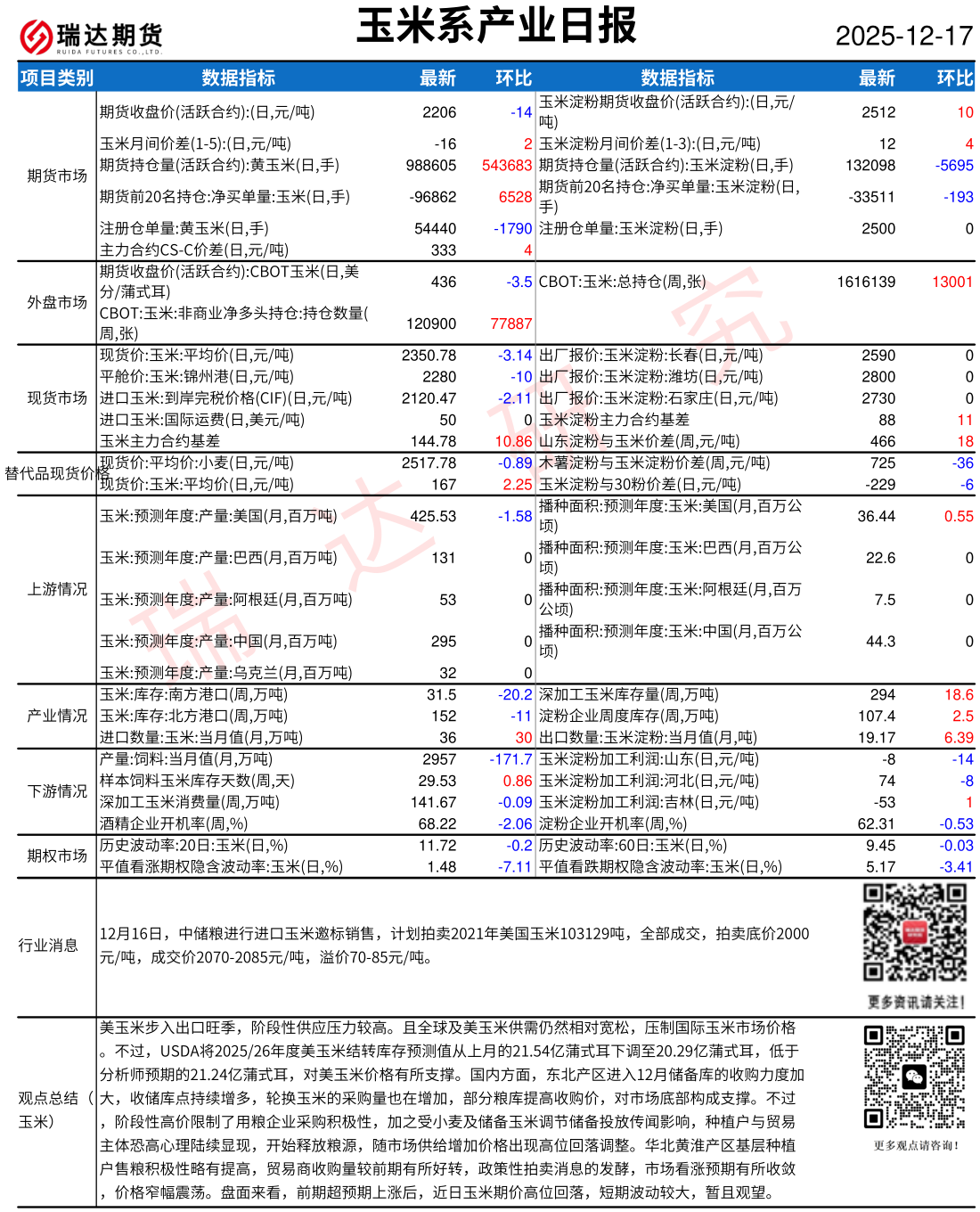 2025-12-17瑞达期货玉米系产业日报20251217