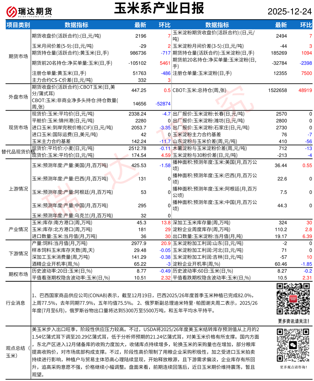2025-12-24瑞达期货玉米系产业日报20251224