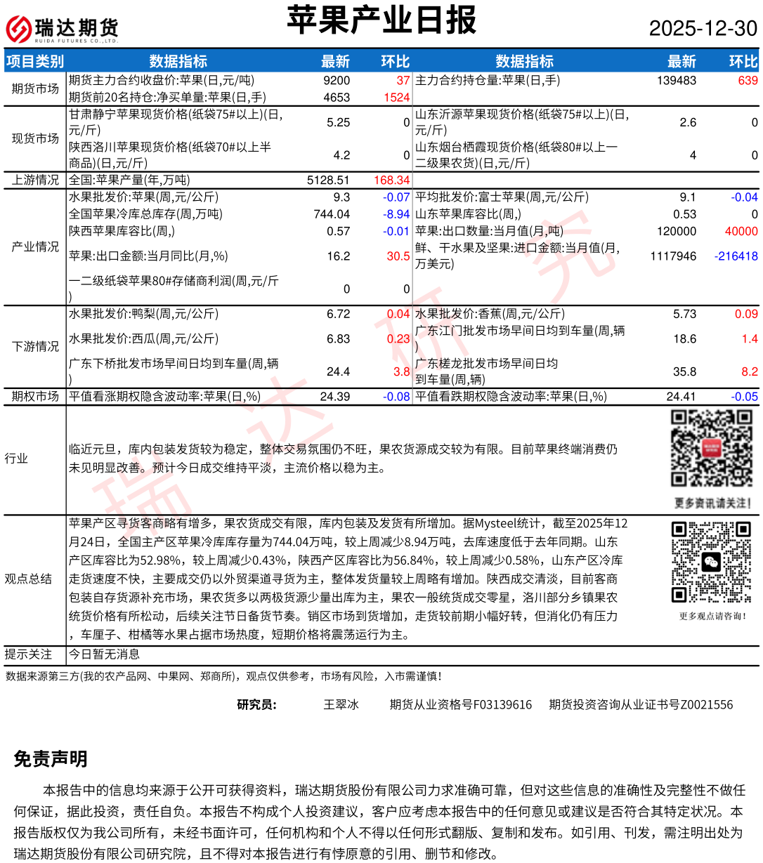 2025-12-30瑞达期货鸡蛋产业日报20251230
