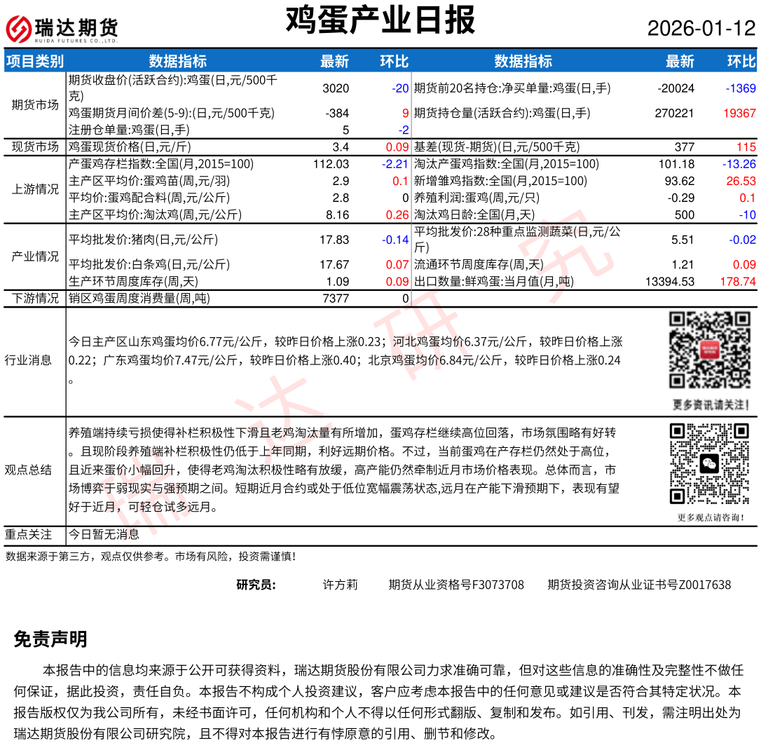 2026-01-15瑞达期货鸡蛋产业日报20260115