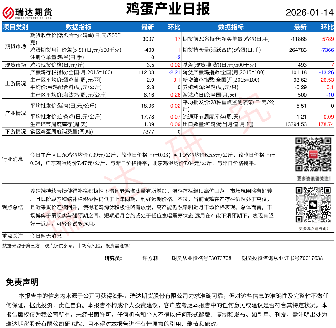 2026-01-15瑞达期货鸡蛋产业日报20260115