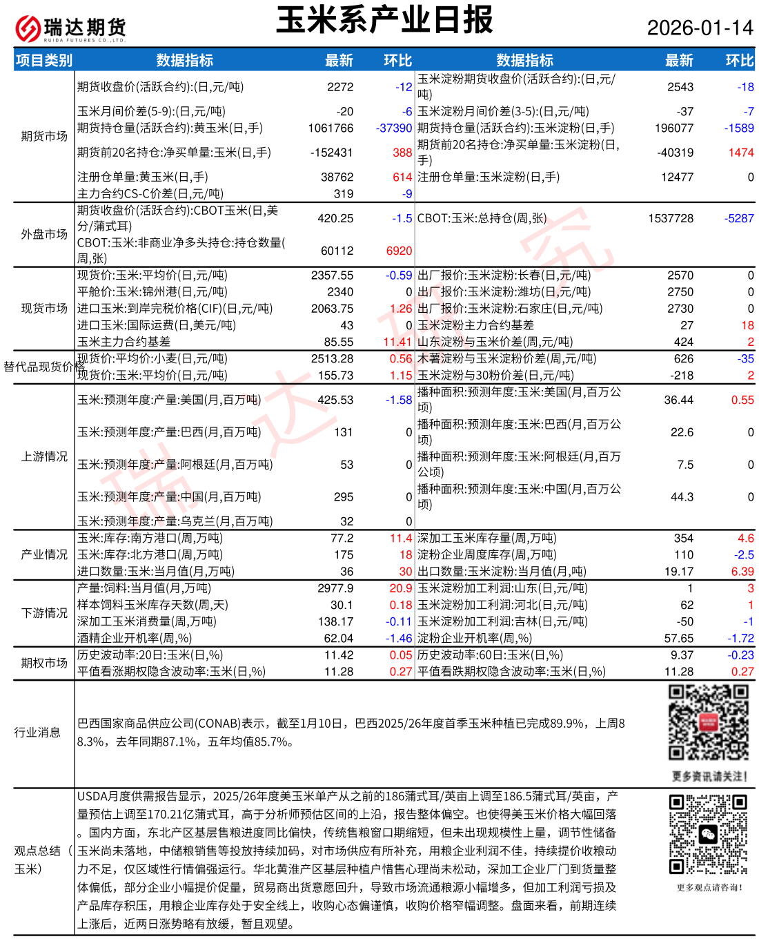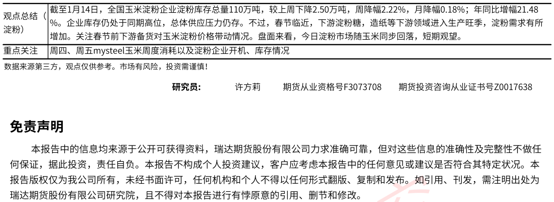 2026-01-15瑞达期货玉米系产业日报20260115