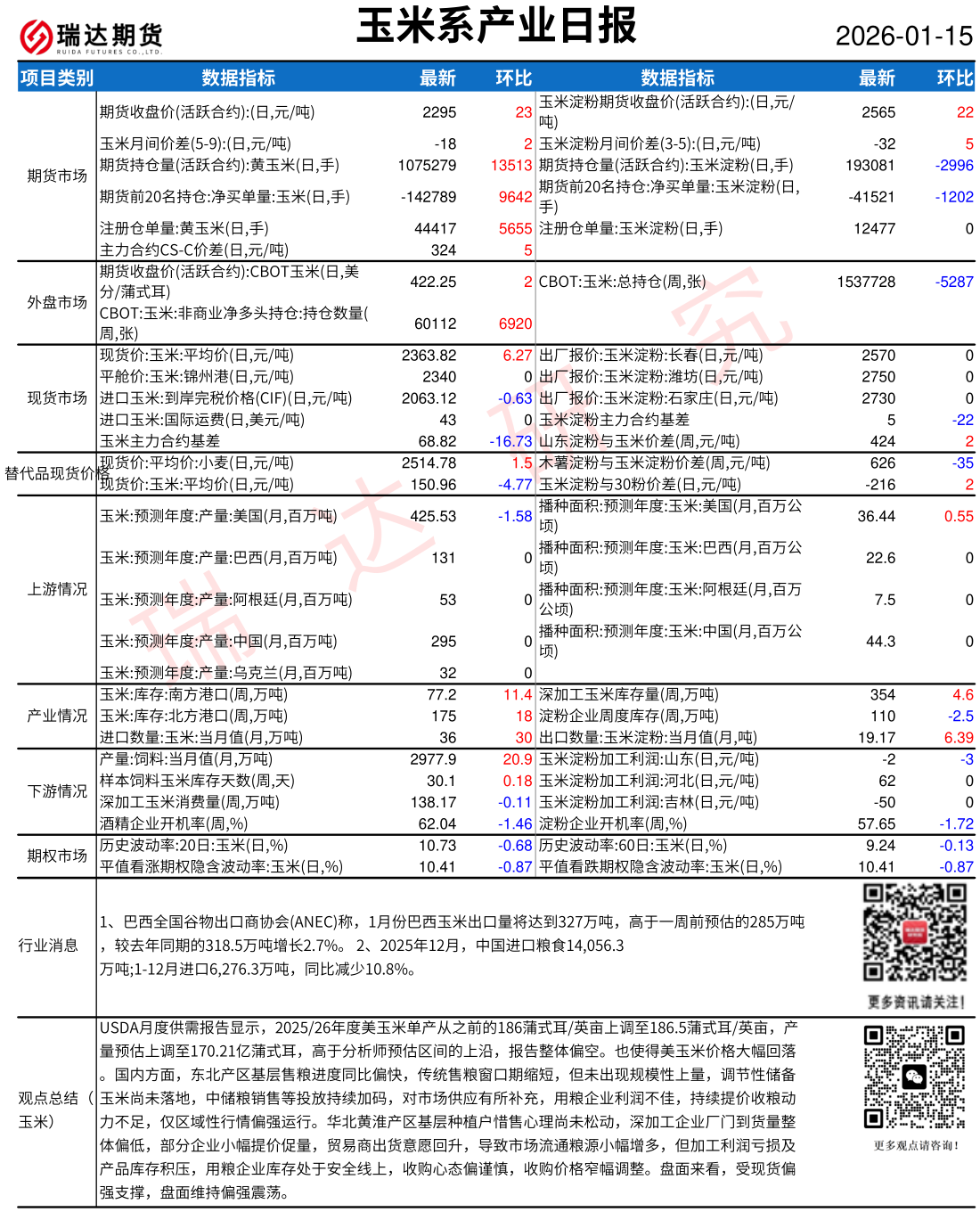 2026-01-15瑞达期货玉米系产业日报20260115