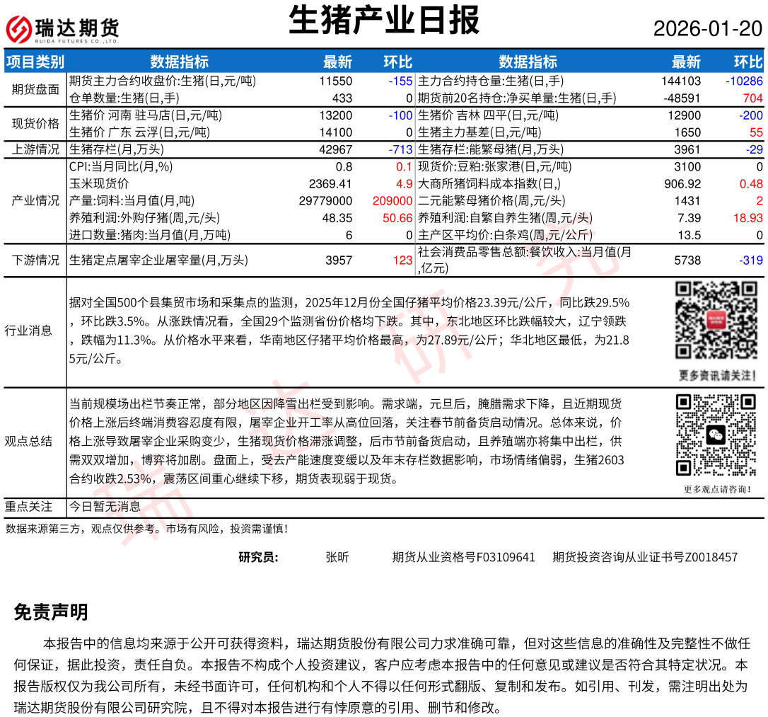 2026-01-22瑞达期货鸡蛋产业日报20260122