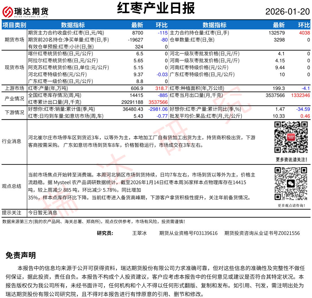 2026-01-22瑞达期货鸡蛋产业日报20260122