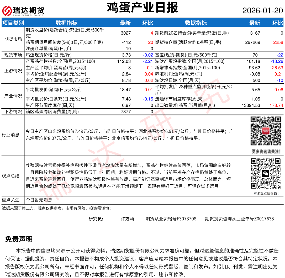 2026-01-22瑞达期货鸡蛋产业日报20260122