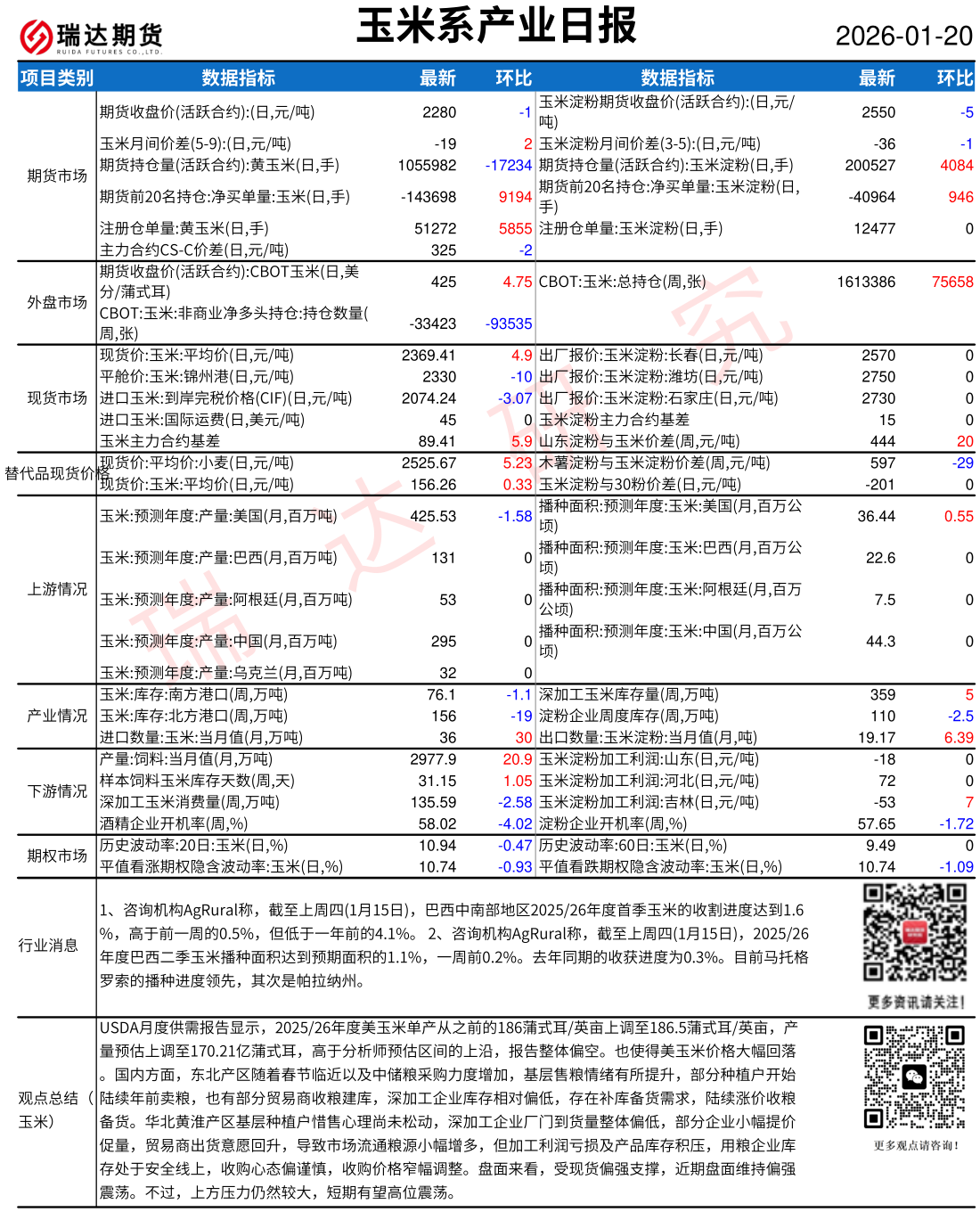 2026-01-22瑞达期货鸡蛋产业日报20260122