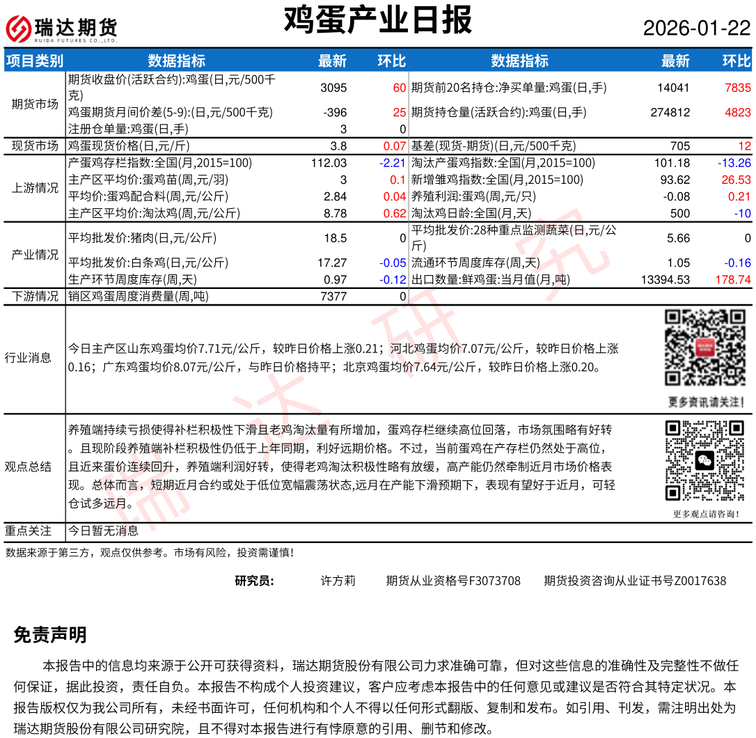 2026-01-22瑞达期货鸡蛋产业日报20260122