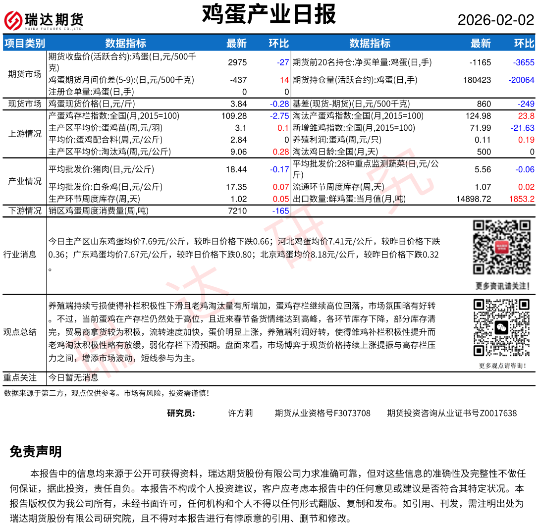 2026-02-02瑞达期货鸡蛋产业日报20260202