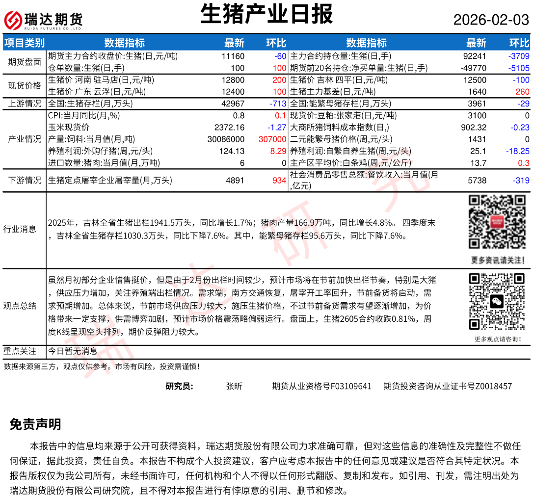 2026-02-05瑞达期货生猪产业日报20260205