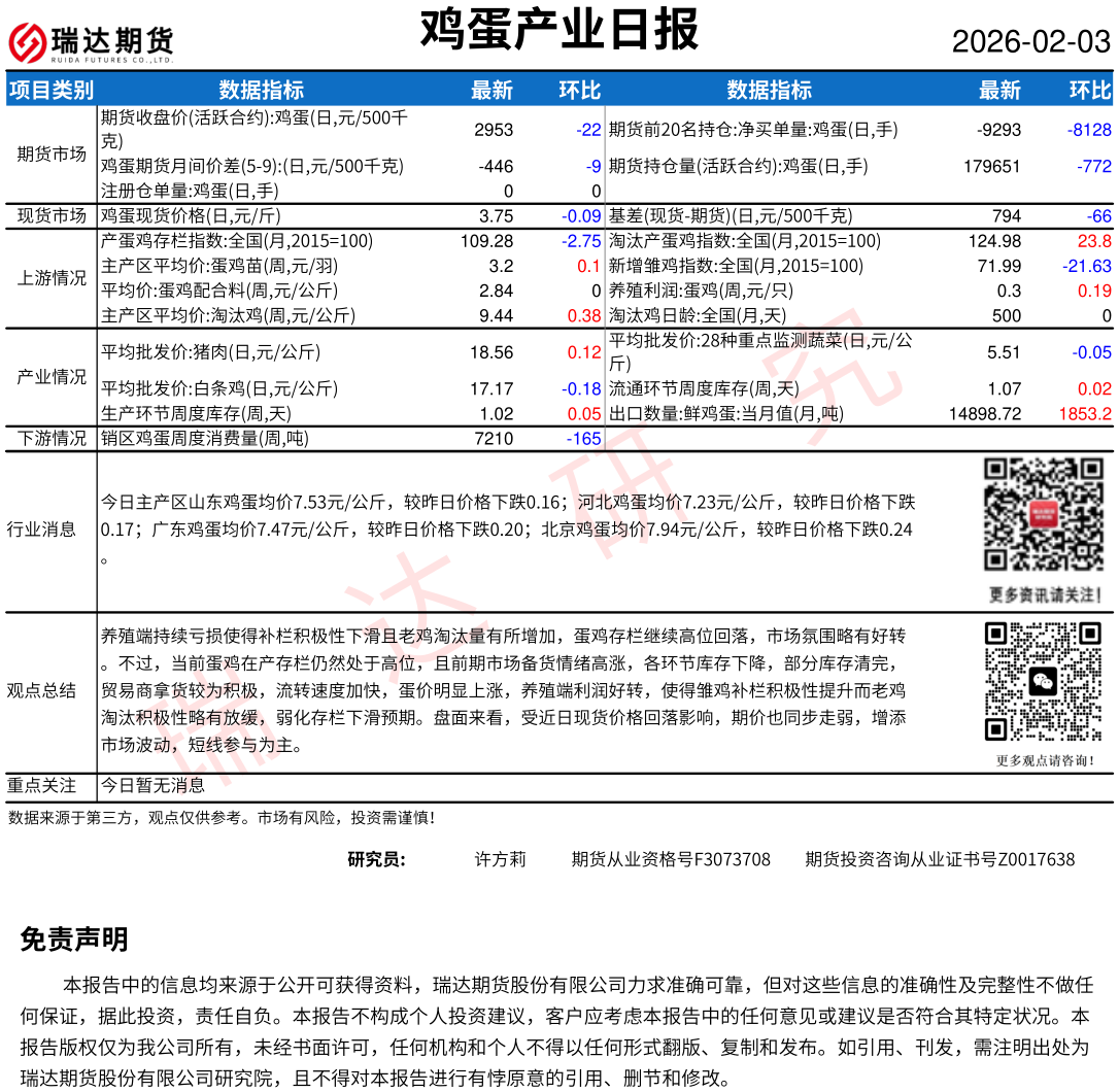 2026-02-03瑞达期货鸡蛋产业日报20260203