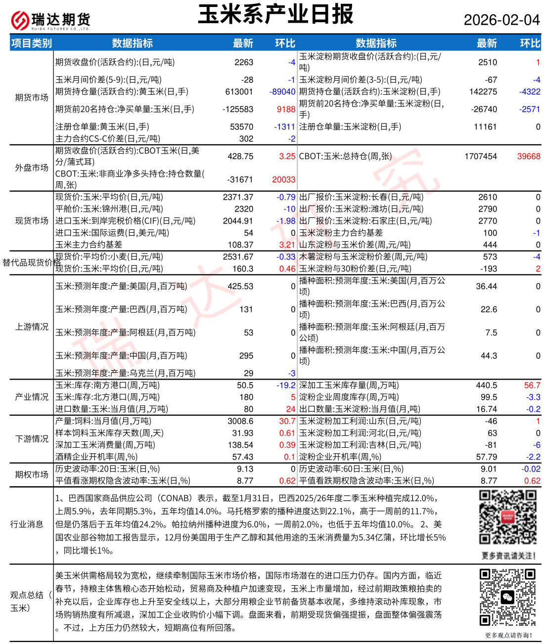 2026-02-04瑞达期货玉米系产业日报20260204