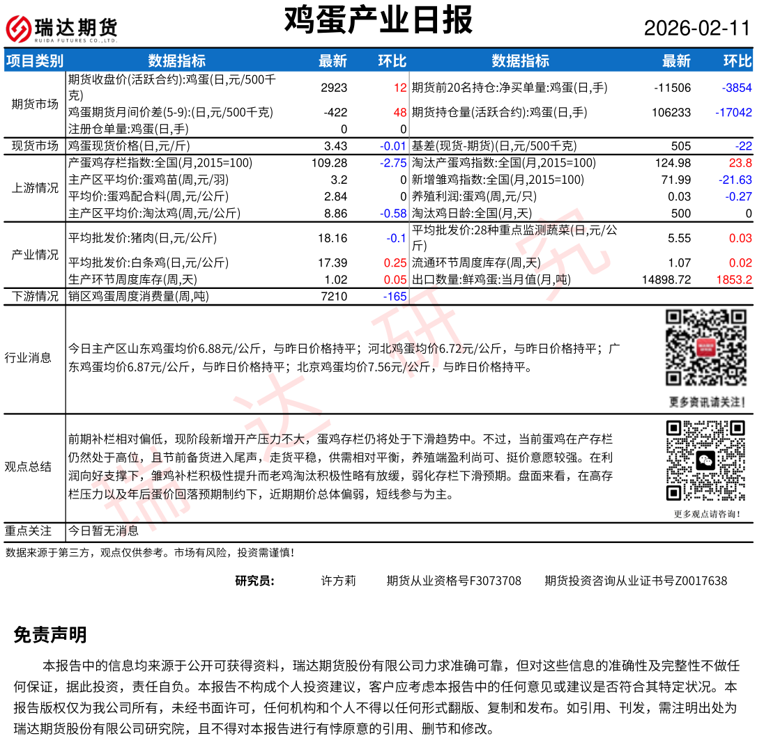 2026-02-12瑞达期货鸡蛋产业日报20260212