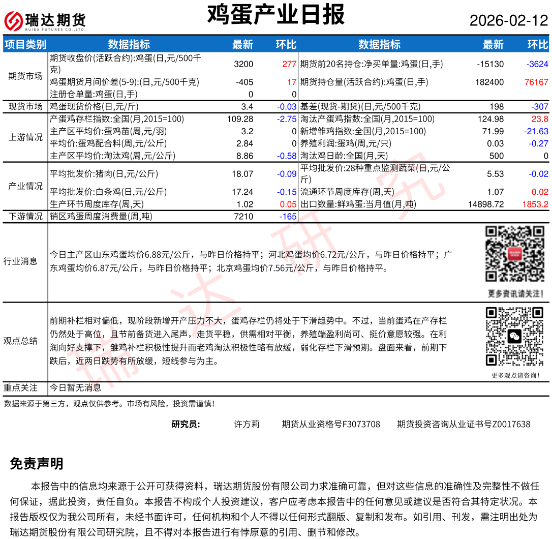 2026-02-12瑞达期货鸡蛋产业日报20260212