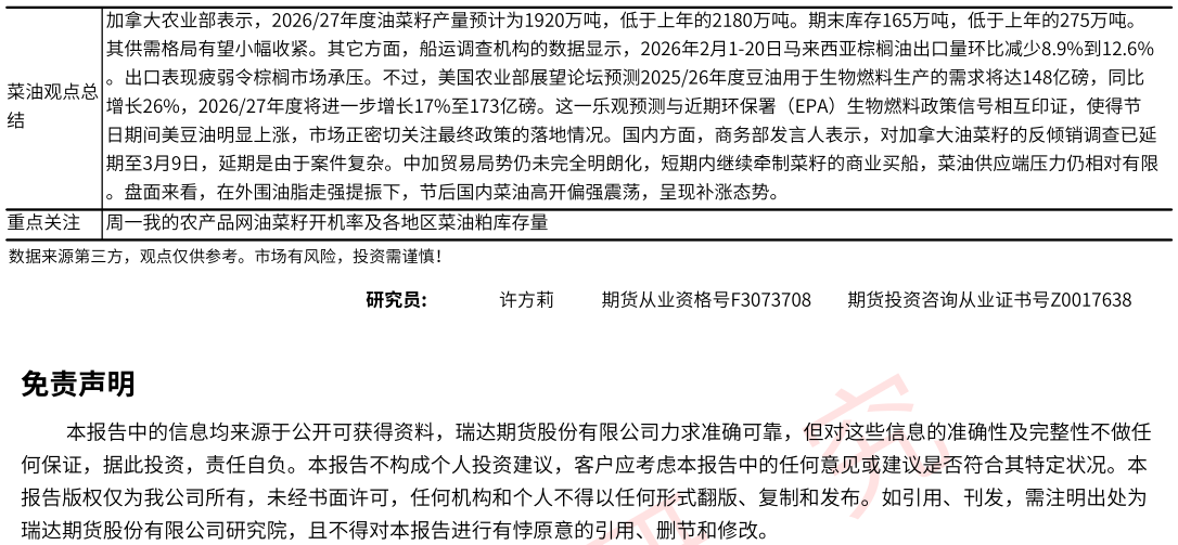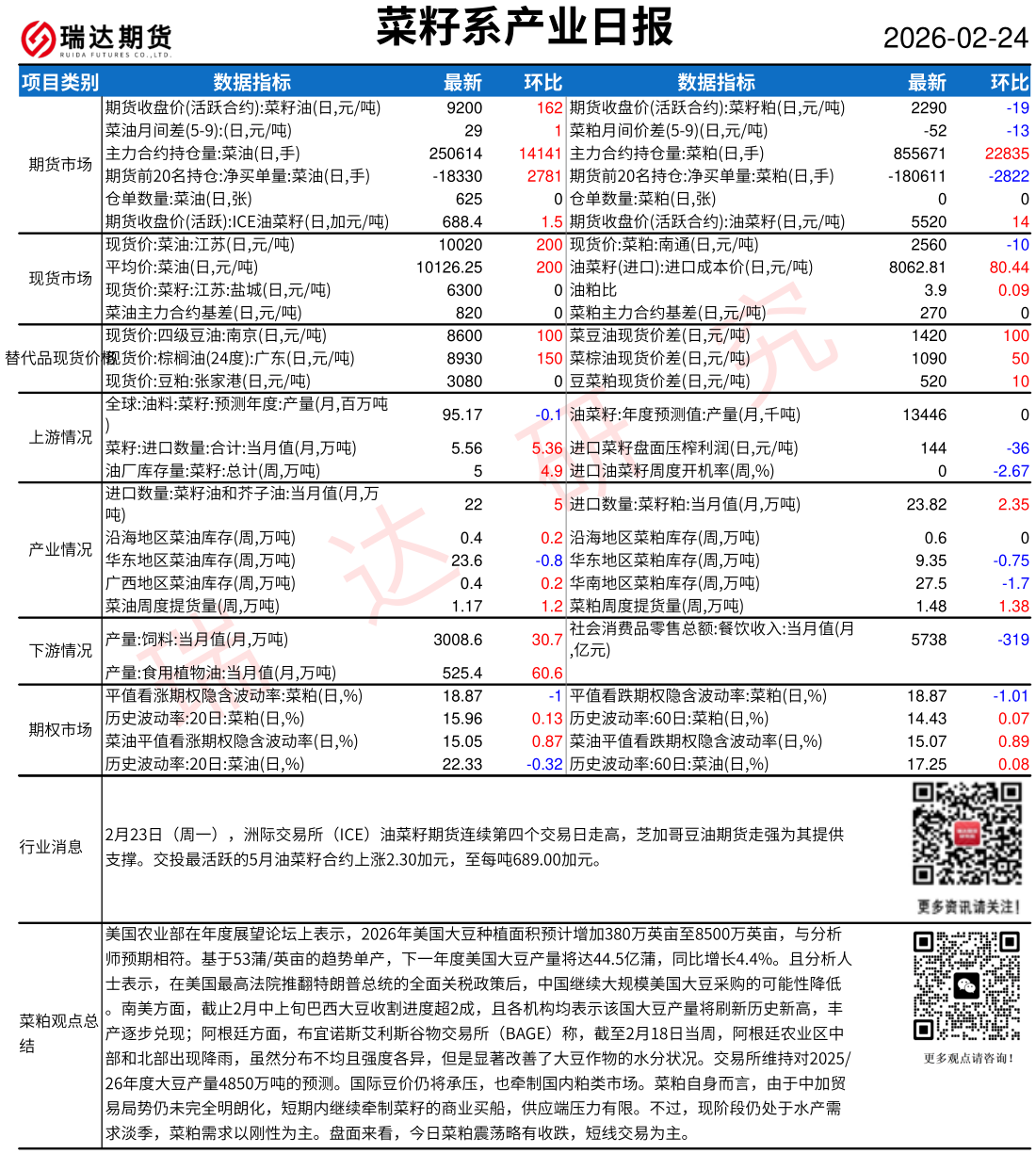 2026-02-24瑞达期货菜籽系产业日报20260224