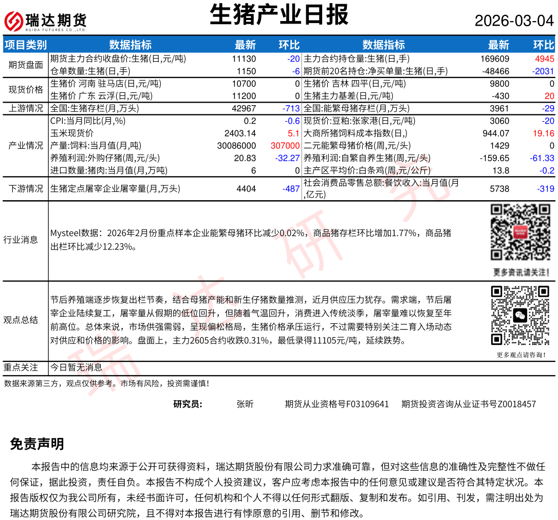 2026-03-12瑞达期货鸡蛋产业日报20260312