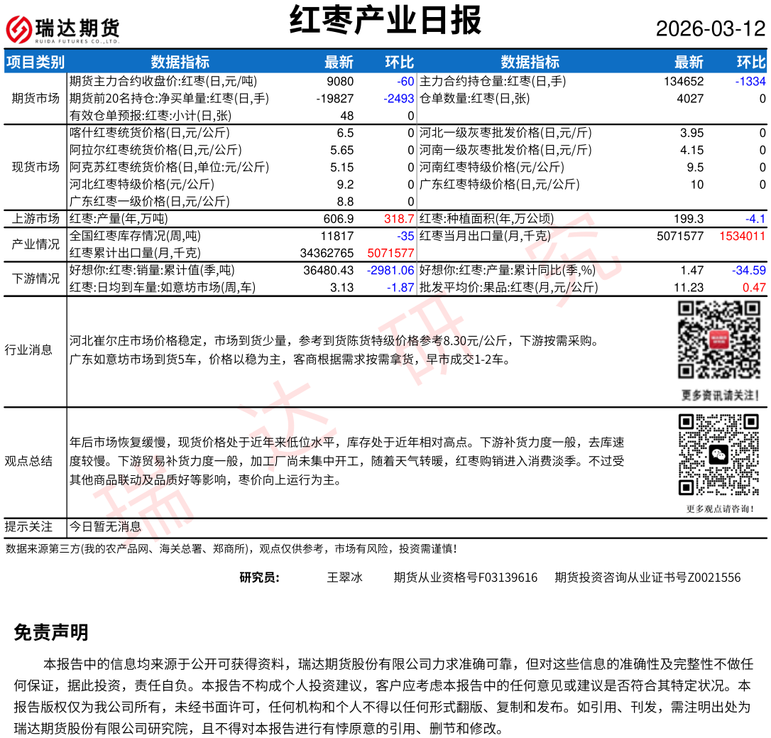 2026-03-12瑞达期货鸡蛋产业日报20260312