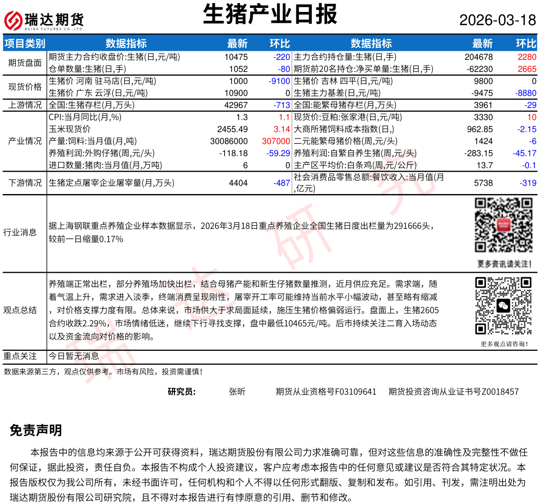 2026-03-19瑞达期货鸡蛋产业日报20260319